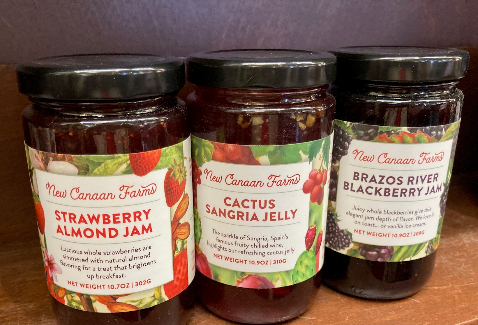 New Canaan Farms of Utopia, Texas, serves up a delicious array of jams and jellies. Handcrafted in 8 oz. jars. Choose from: